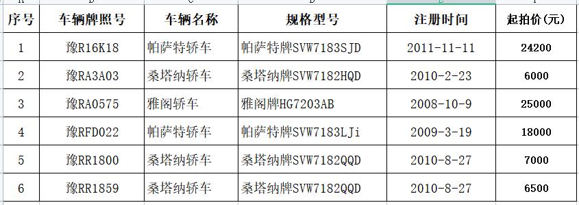 中行南陽(yáng)分行車輛拍賣公告  2022-12-6